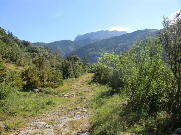 Hacia el km 1,3 llegamos a los restos más evidentes de la antigua calzada romana, un pretil y algunas grandes piedras nos indican que en tiempos fue una vía muy transitada. Antes de abrir el paso por estrecho de la Boca del Infierno era el único paso hacia los valles superiores y hacia la frontera con Francia.